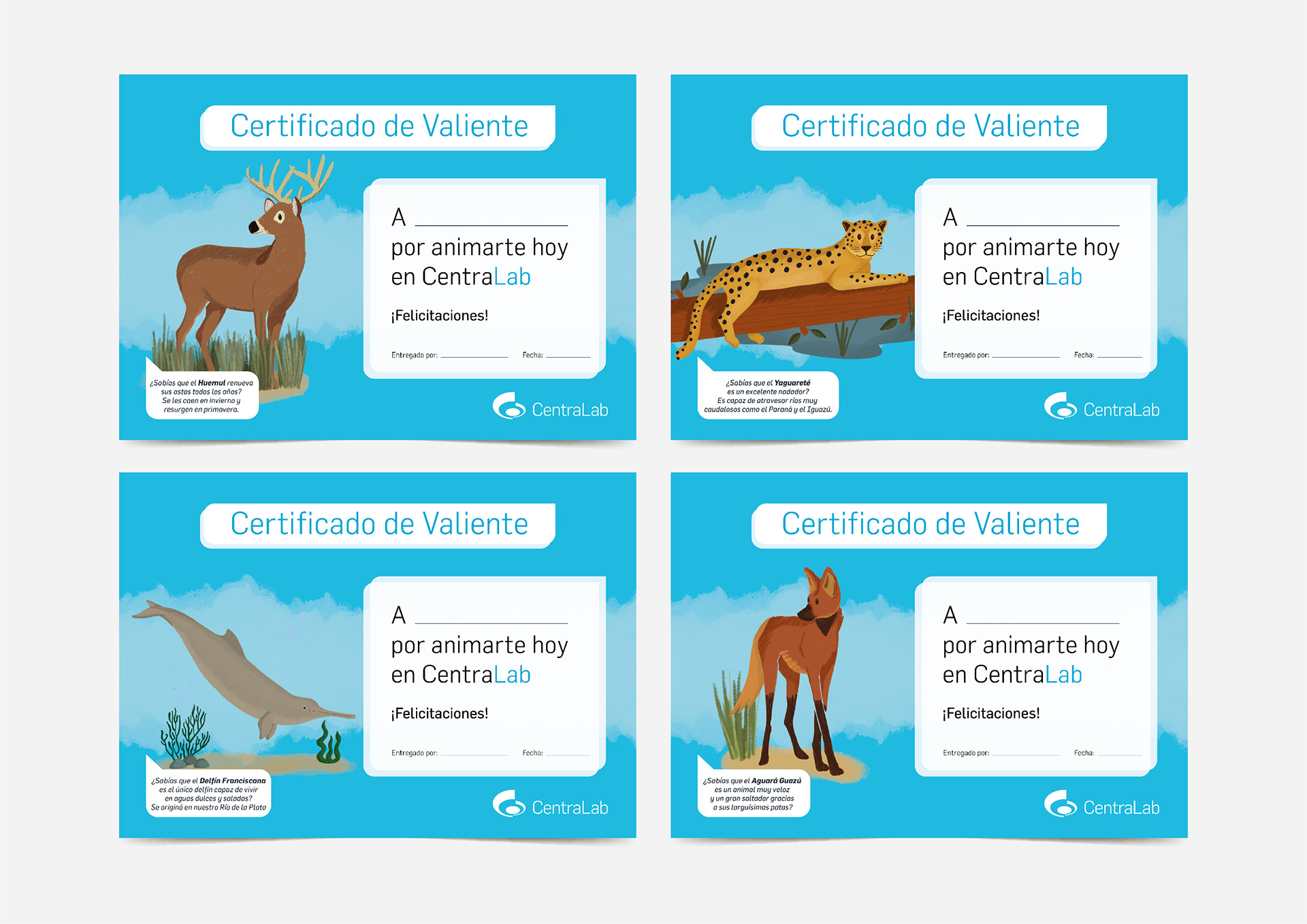 Proyecto junto a la Agencia PopCorn. Ilustraciones y diseño de certificados para los niños que se realizan análisis clínicos en el laboratorio.